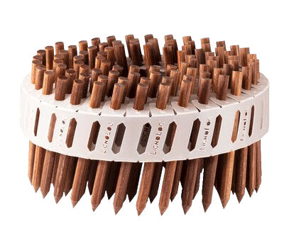 sistema de pregos em bobinas sustentável 100% em madeira.