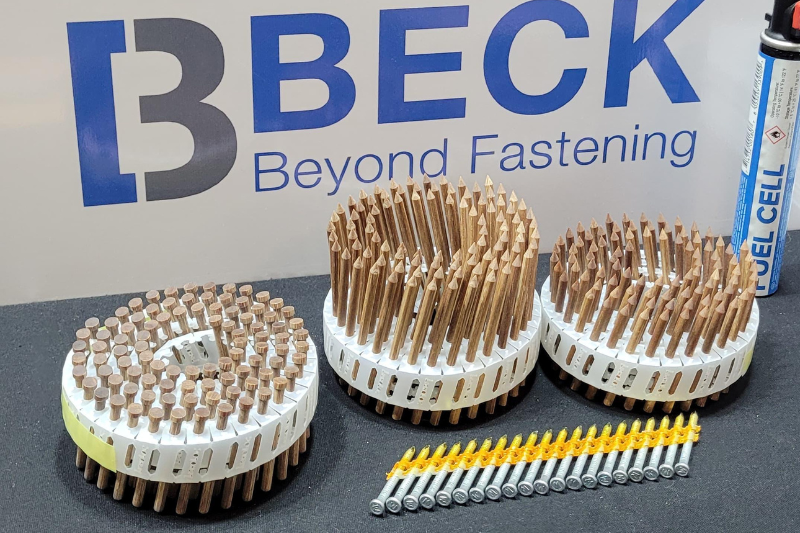 - Sistema + Pregador: Usual com pregadores pneumáticos F44 e F60 da BECK®, não requer pré-perfuração e pode ser usinado sem problemas.